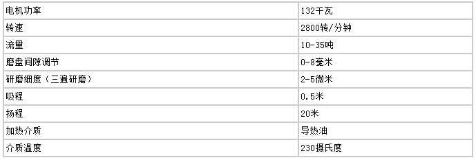 高速剪切均化磨技術(shù)參數(shù)(20T/小時(shí))